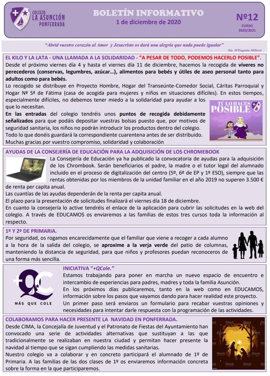 Boletín informativo del 1 de diciembre del 2020
