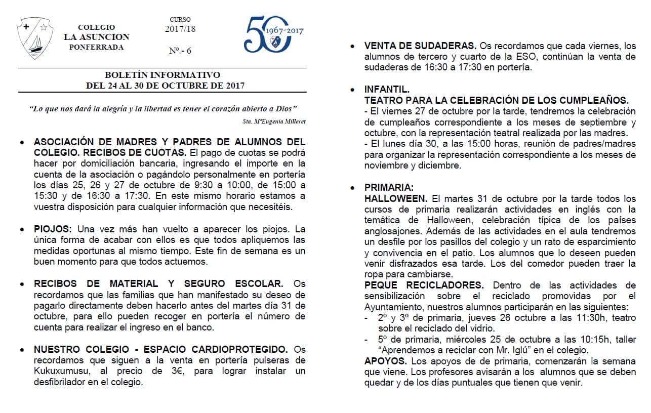 Boletín informativo del 24 de octubre del 2017