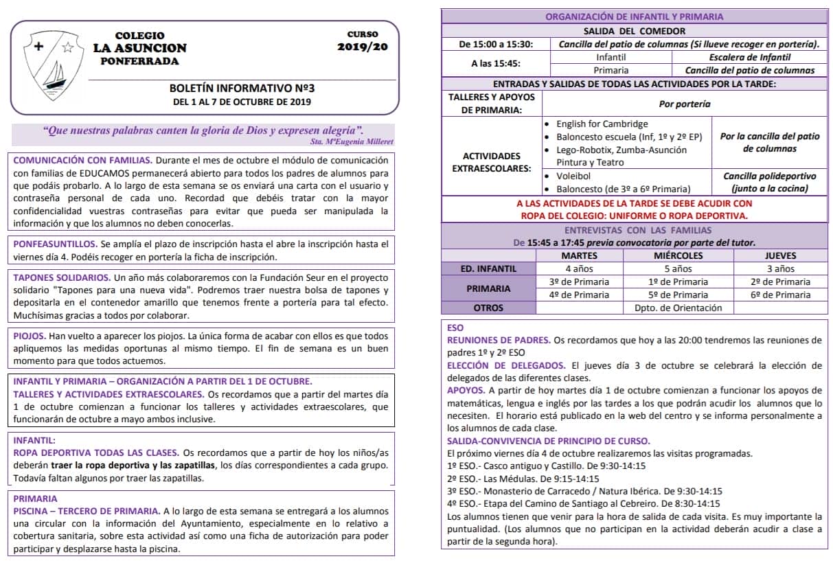 Inicio Noticias Boletín Informativo Boletín informativo del 1 de octubre del 2019