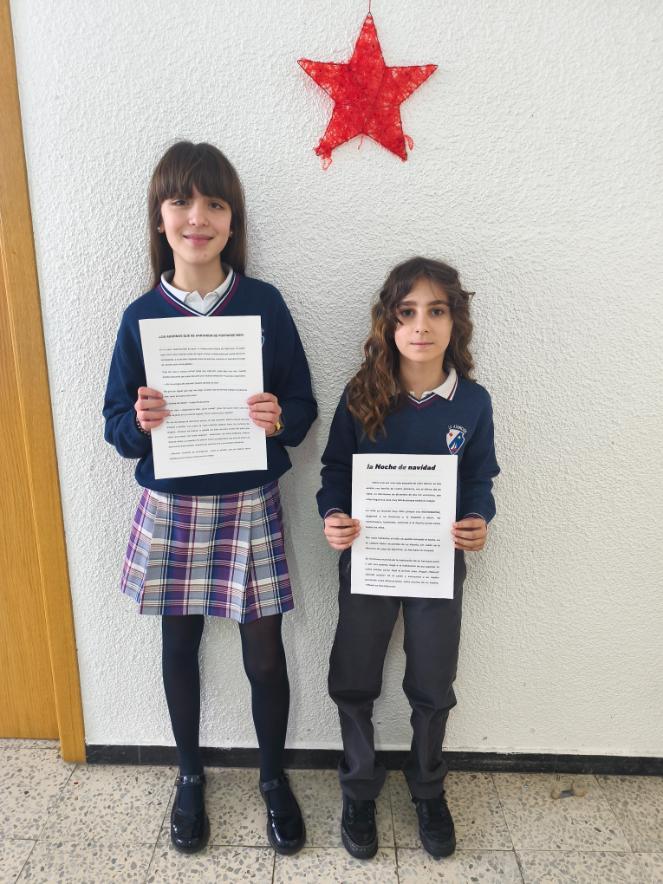 Se trata de Lucía Morán que ha obtenido el tercer premio en la categoría de 9 a 11 años con su cuento "Los adornos que se hartaron de portarse bien" y Anaís Urones que también ha conseguido un tercer premio en la categoría de 12 a 14 años por "La noche de Navidad".