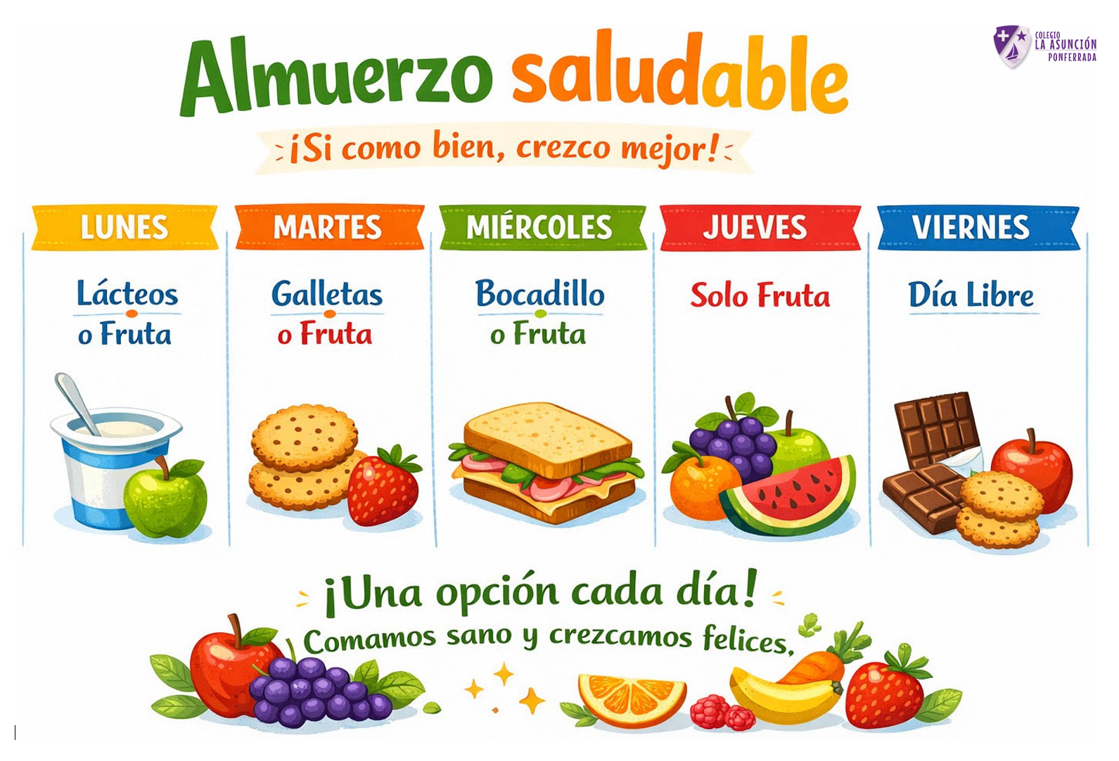 Recordamos que solo debe traerse una opción, no ambas. Con esta adaptación buscamos ofrecer alternativas saludables diariamente, evitar la repetición continuada de ciertos productos y asegurar el cumplimiento de los objetivos del proyecto.