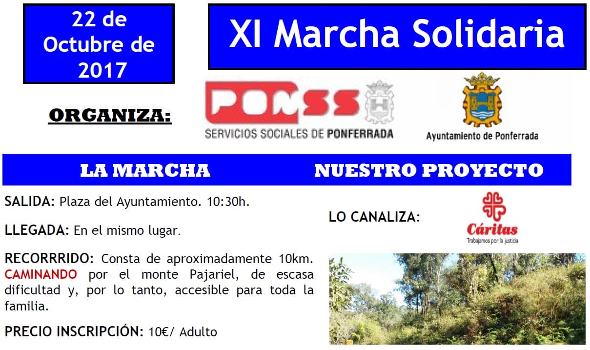 En este artículo os presentamos toda la información sobre la XI Marcha Solidaria que organiza el Ayuntamiento y los Servicios Sociales de Ponferrada. El dinero recaudado se destinará íntegramente para financiar el proyecto: Acondicionamiento de los manantiales de Kamikolo, Kyabundo y Kikuyo.