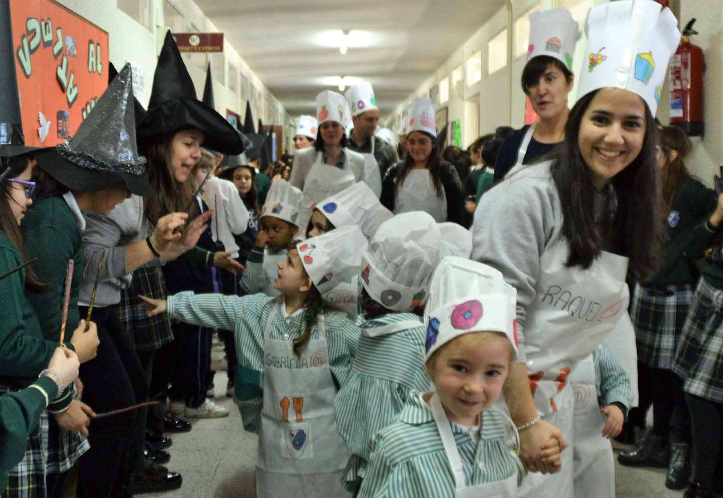 Comenzamos desfilando por el piso de Primaria, en donde todos estaban preparados con máscaras relacionadas con sus proyectos de gamificación. Pasamos por los mundos de: BrainLand, Harry Potter, Star Wars, Mary Poppins, La Sirenita y Willy Fog.