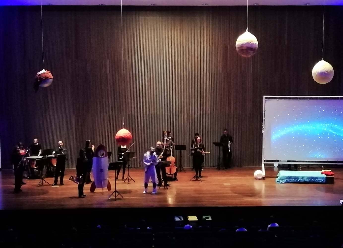 La obra fue interpretada a modo de cuento, en donde algunos instrumentos musicales de la orquesta, representaban a varios astros del sistema solar.