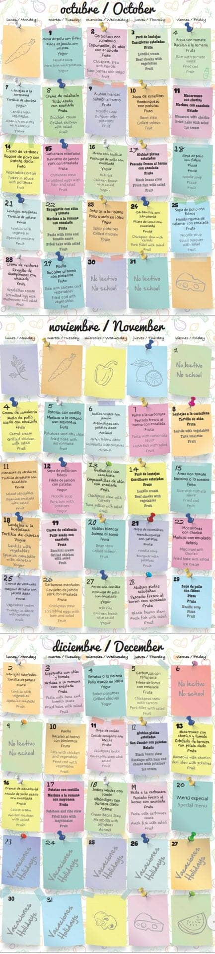 Inicio Noticias Noticias de cursos pasados Noticias curso 2019-20 Menú del comedor para el primer trimestre del 2019