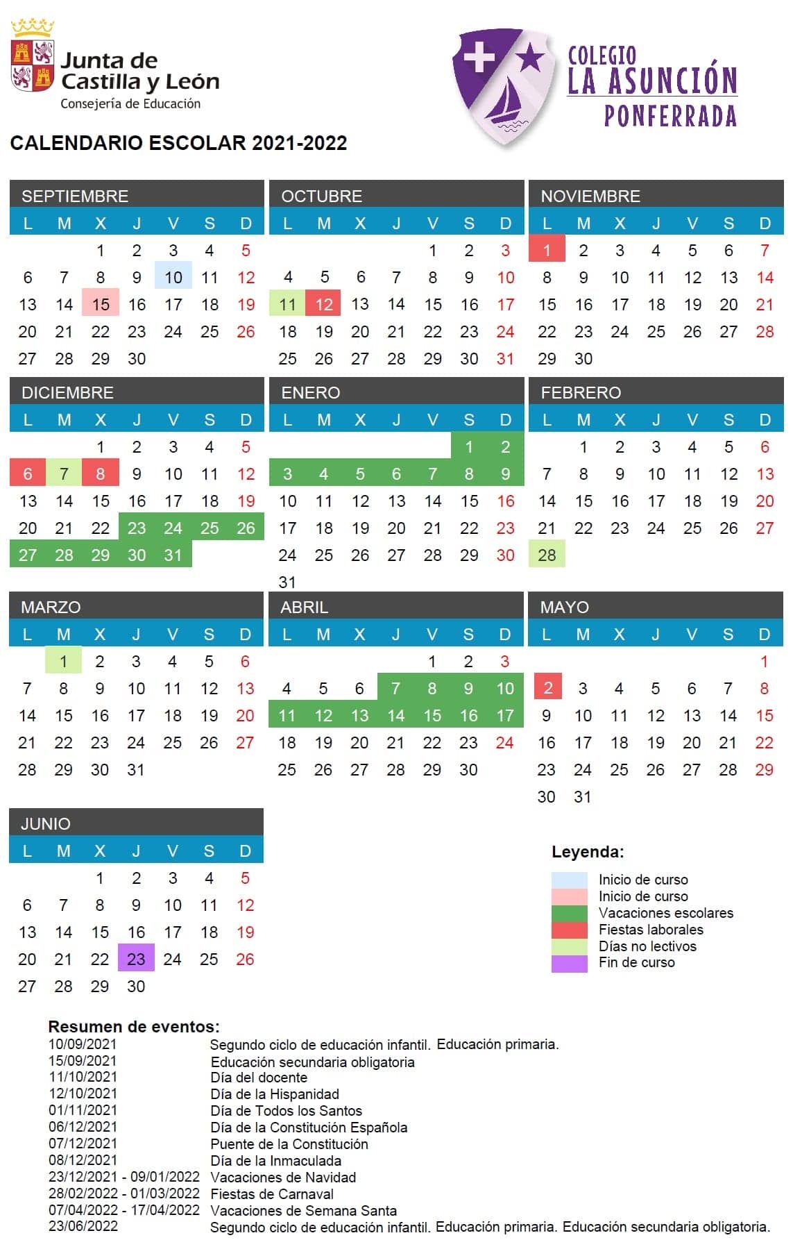 El calendario escolar ha sido modificado en el portal de la Junta de CyL, el día 2 de mayo pasa a ser festivo por trasladarse el día del trabajo del domingo 1 al lunes 2. Os dejamos a continuación el enlace al portal de la Junta de Castilla y León de donde se ha extraído nuestro calendario: https://www.educa.jcyl.es/es/calendario-escolar