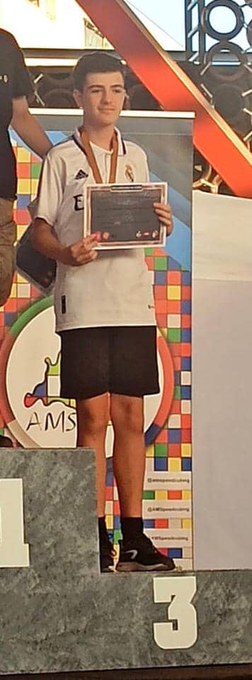 Héctor Haro, obtuvo el pasado fin de semana la medalla de bronce en el campeonato de España de cubos de Rubik celebrado en Alcorcón. Con un total de trescientos participantes Héctor obtuvo el tercer puesto en la modalidad de Pyramix, con una media de 3,18 segundos. Siendo su mejor tiempo individual de 2,1 segundos. Este es el primer campeonato que se celebra después de dos años sin campeonato presencial como consecuencia de la pandemia. Héctor tiene catorce años y estudia 3º de E.S.O. en nuestro colegio, siendo una vez más es el más joven de todos los que consiguieron pódium.Desde el colegio, felicitamos a Héctor por sus logros y le animamos a seguir en esta línea.