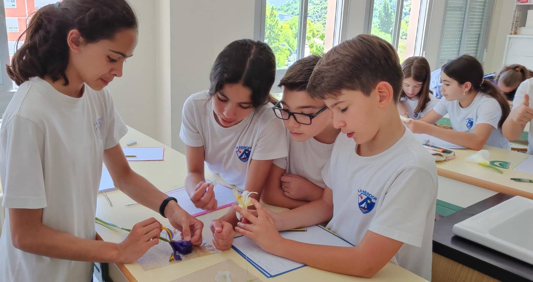 El alumnado de 6º Primaria hemos estado en el laboratorio observando las partes de la flor utilizando la lupa binocular. Nos hemos dado cuenta de las diferencias de cada tipo de flor con sus estambres y pistilos.