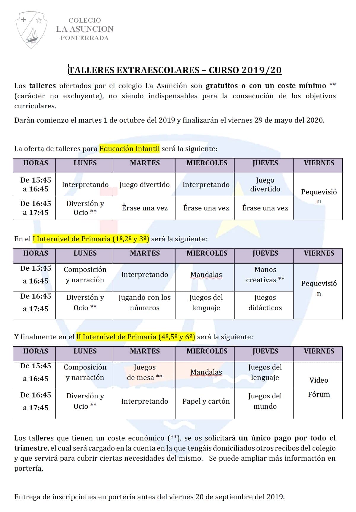 Oferta de talleres extraescolares