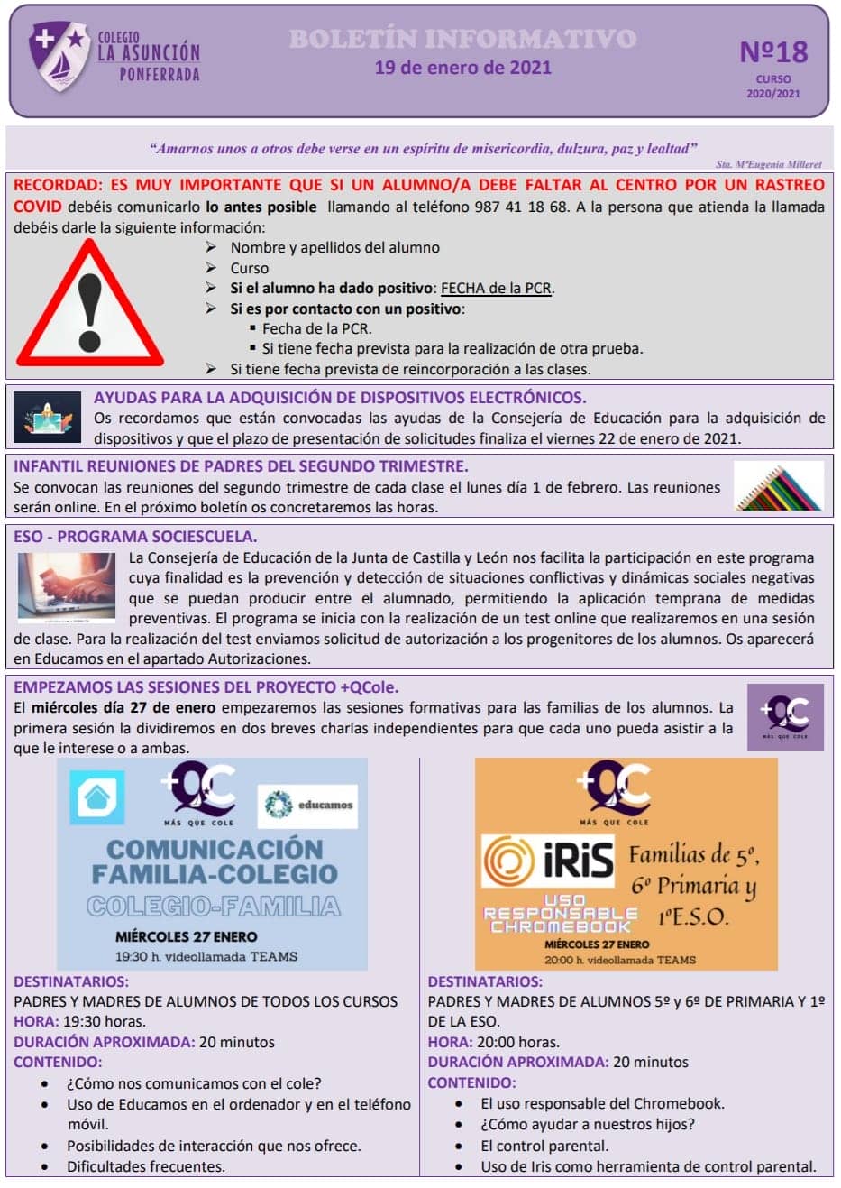Inicio Noticias Boletín Informativo Boletín informativo del 19 de enero del 2021