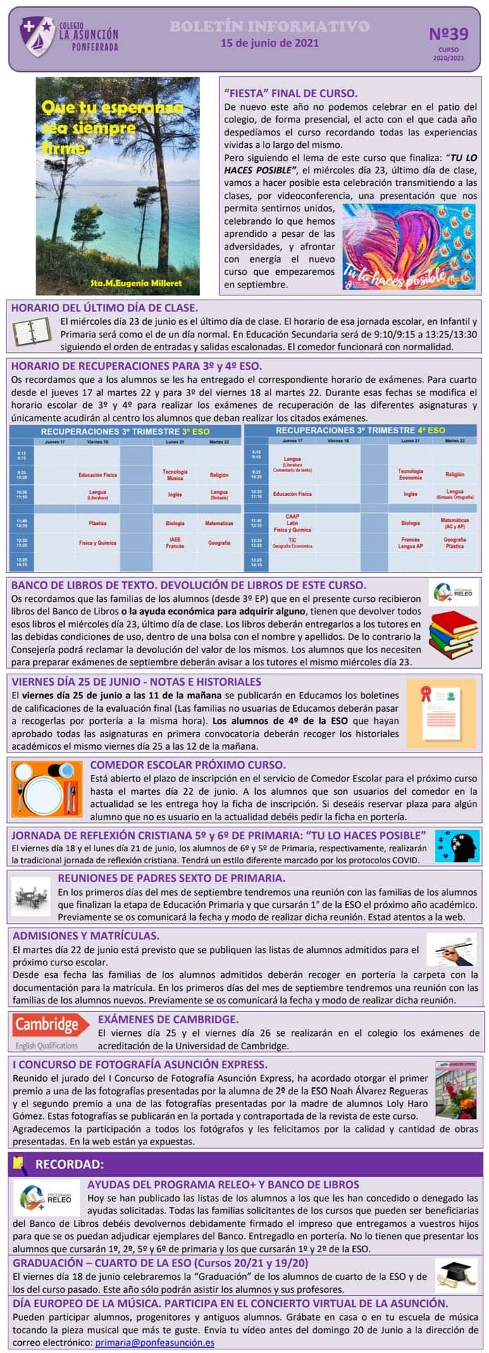 Boletín informativo del 15 de junio del 2021