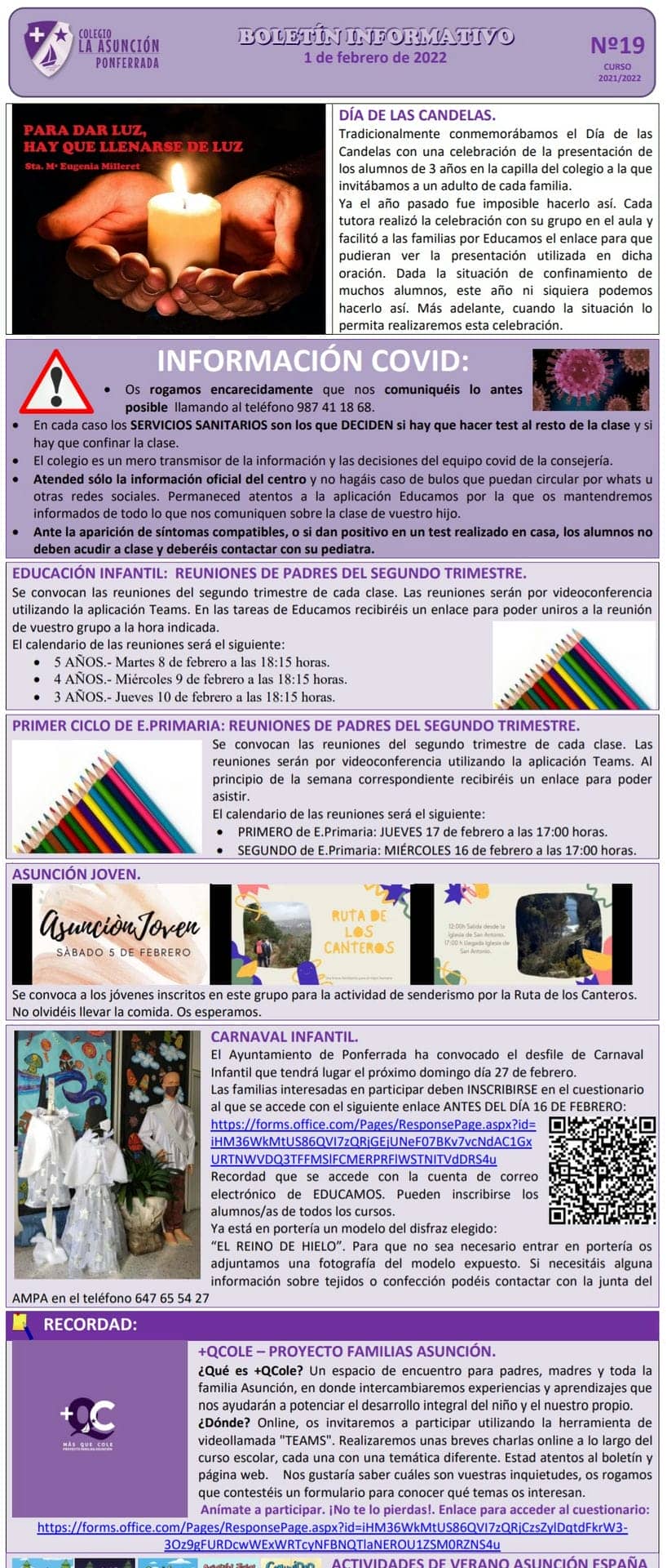 Boletín informativo del 1 de febrero del 2022