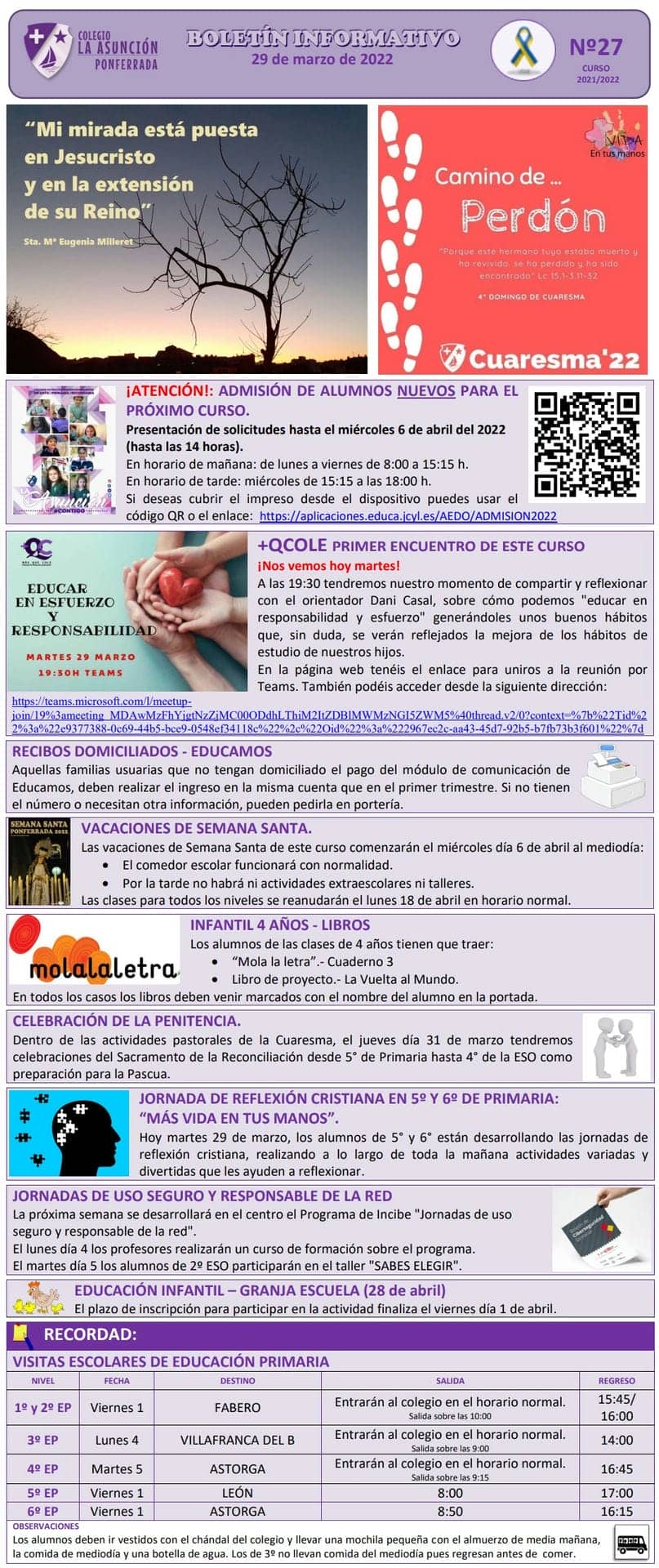 Boletín informativo del 29 de marzo del 2022