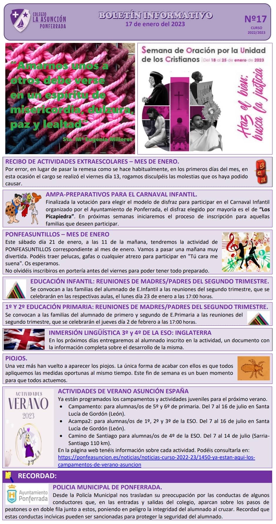 Inicio Noticias Boletín Informativo Boletín informativo del 17 de enero del 2023