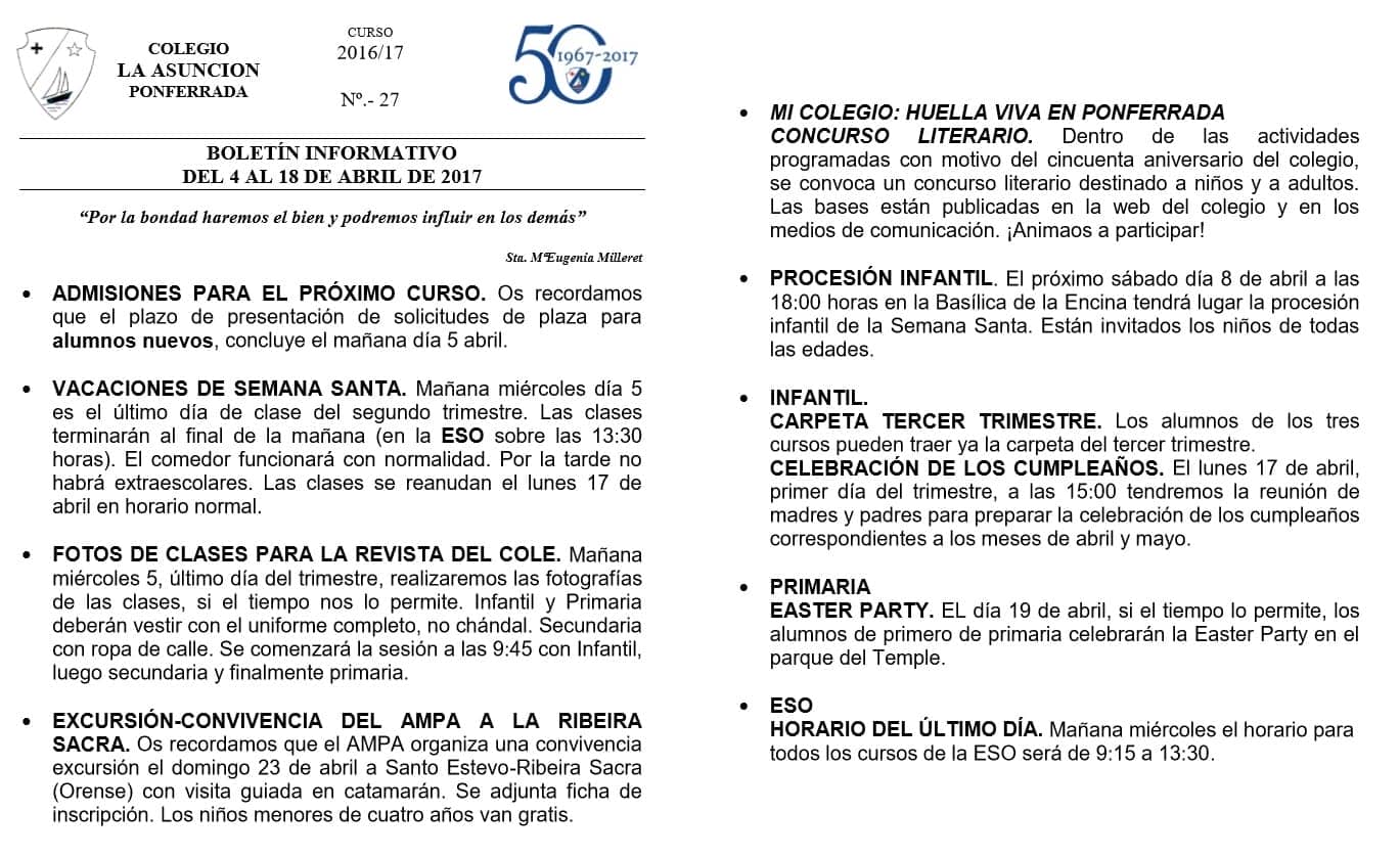 Inicio Noticias Boletín Informativo Boletín 4 abril 2017