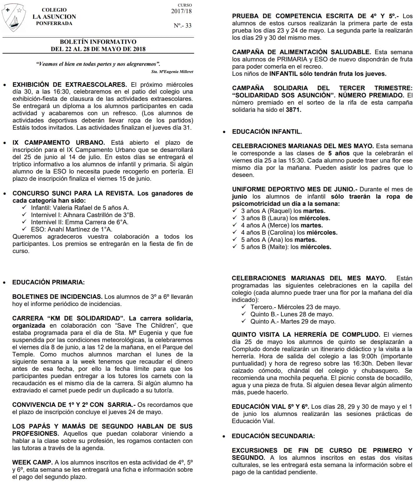 Inicio Noticias Boletín Informativo Boletín del 22 de Mayo del 2018