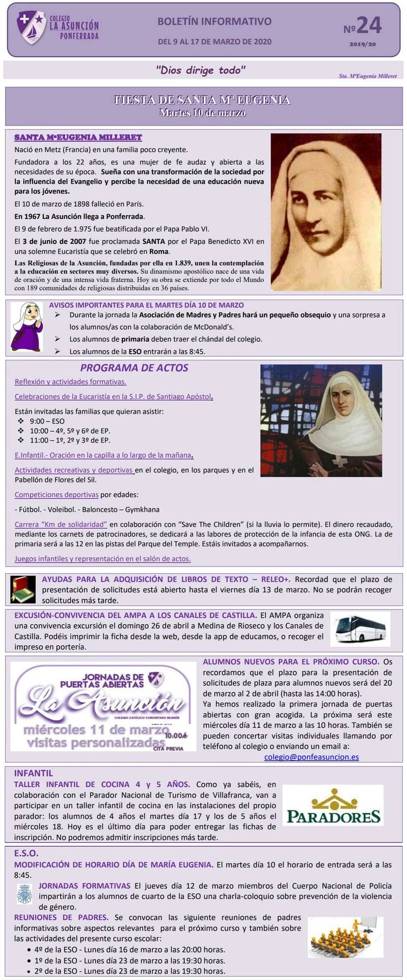 Boletín informativo del 9 de marzo del 2020
