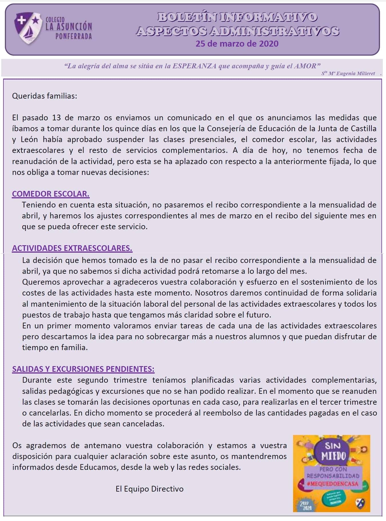 Boletín informativo de aspectos administrativos