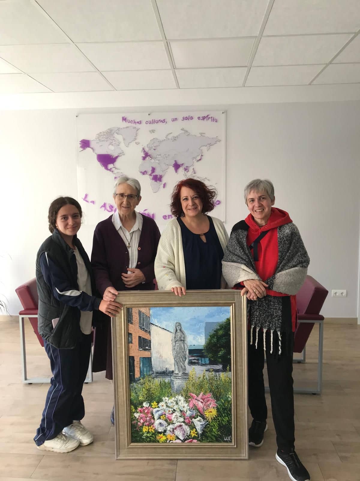 "Es un honor contribuir a la creatividad y la inspiración en este colegio, que tanto valora el arte y la cultura", comentó Loly durante la entrega a la directora del centro y a la superiora de la comunidad de religiosas.