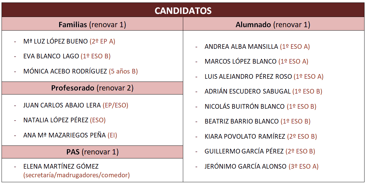 Publicación del listado provisional de candidaturas para la renovación parcial del Consejo Escolar.