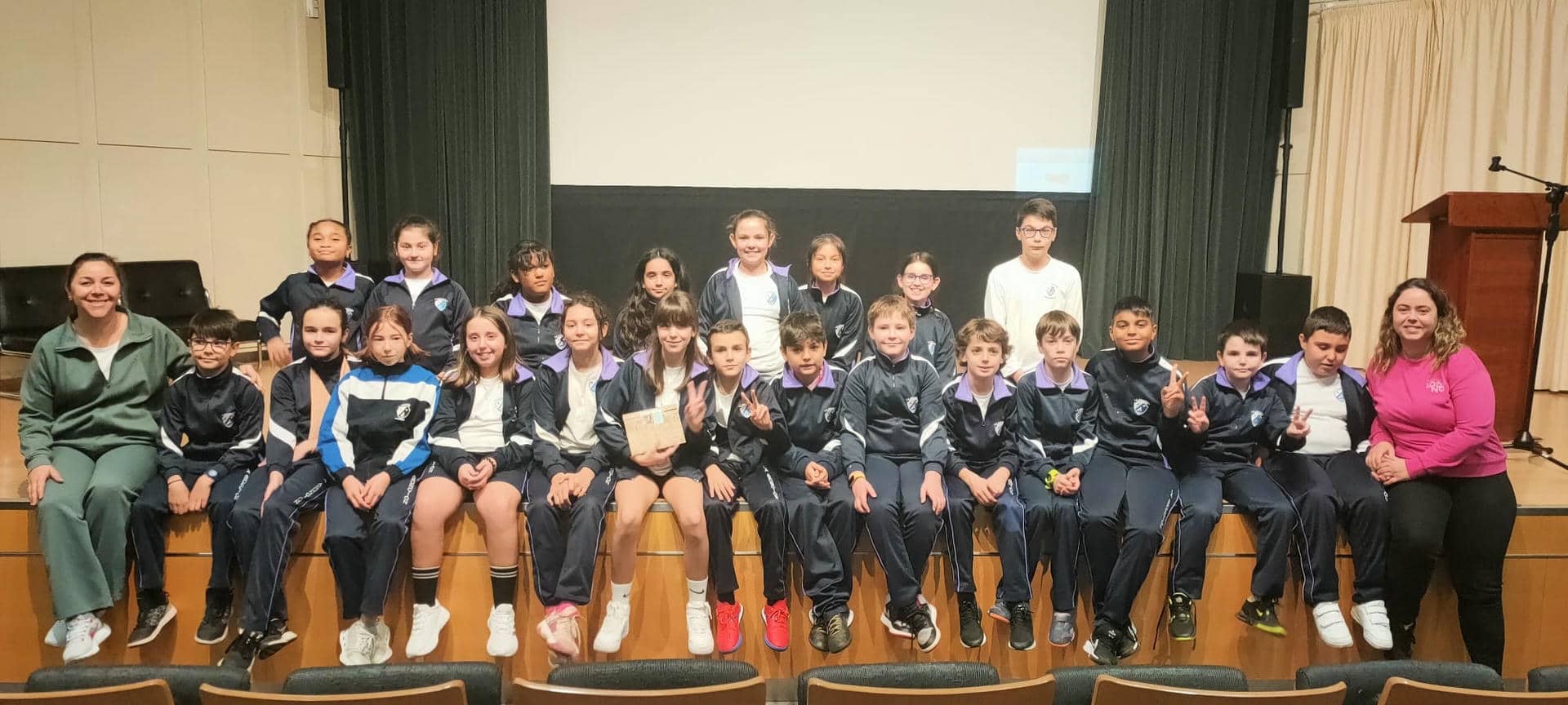 El alumnado de 5ºA de primaria se desplazó el martes, 3 de diciembre, a la Casa de la Cultura de Ponferrada, para acompañar a una de sus compañeras, Lucía Morán Méndez, que había sido galardonada con el 4º premio obtenido por su participación en el X Certamen Literario Escolar "Mujeres y Ciencia" organizado por el Ayuntamiento de Ponferrada en Colaboración con los Servicios Sociales.
