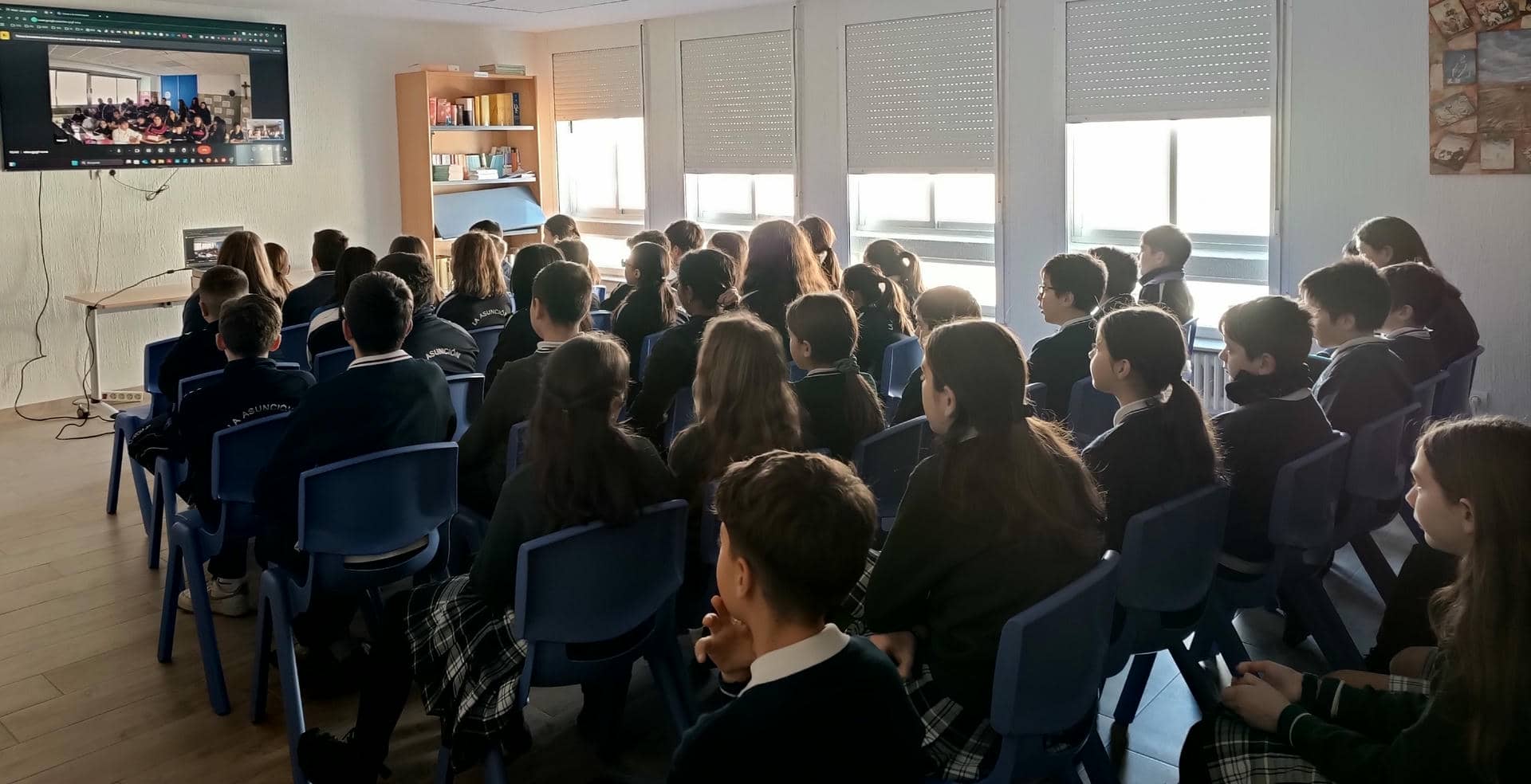 Nuestras alumnas y alumnos de sexto de primaria han protagonizado un emotivo encuentro virtual con estudiantes de un colegio en Paiporta, una comunidad que recientemente ha enfrentado los desafíos de la DANA.