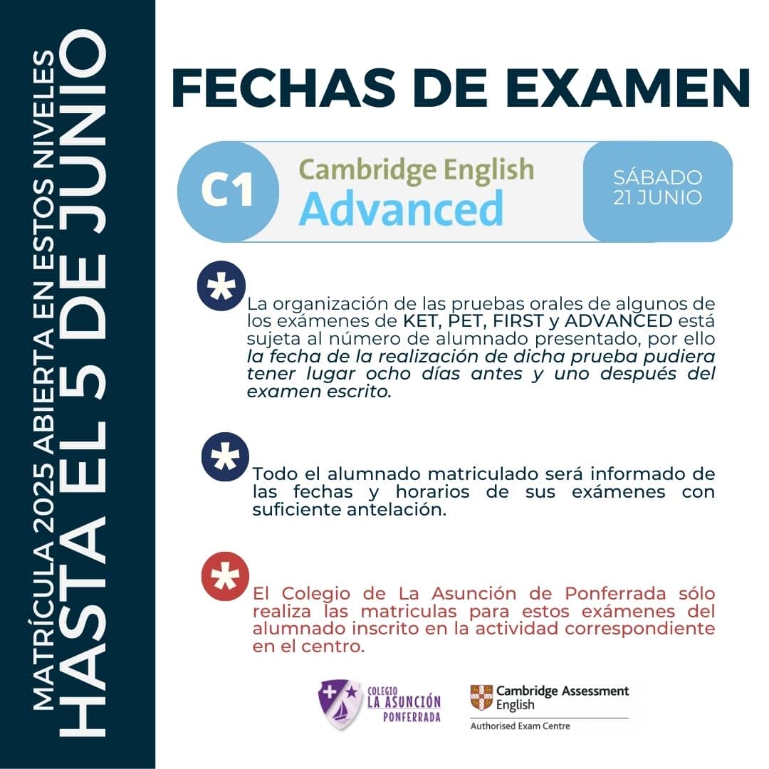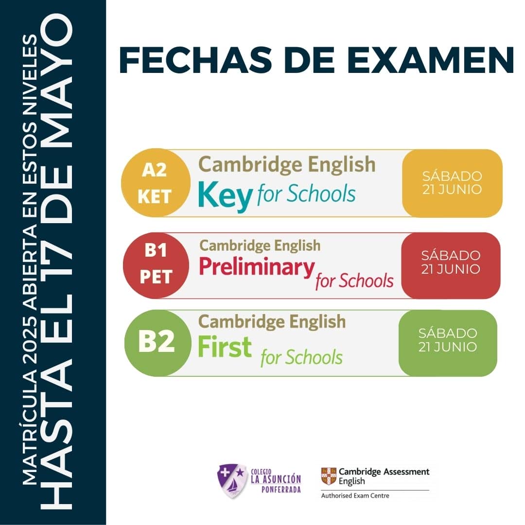 Compartimos las fechas de realización de las pruebas de Cambridge. Prestad atención a los plazos de matrícula, ya que varían en función del nivel.