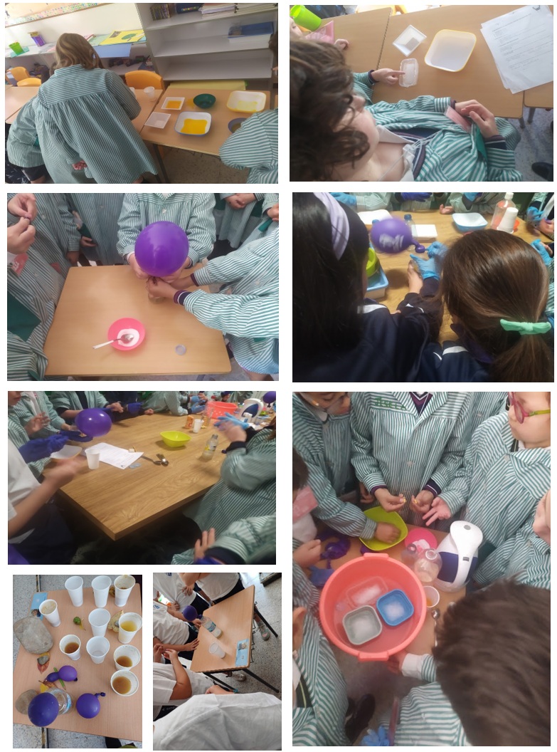 The young scientists, observed how ice melts into water, demonstrating the transition from solid to liquid. They also experimented with glue and washing powder to create a solid and finally used balloon with bicarbonate to generate gas.