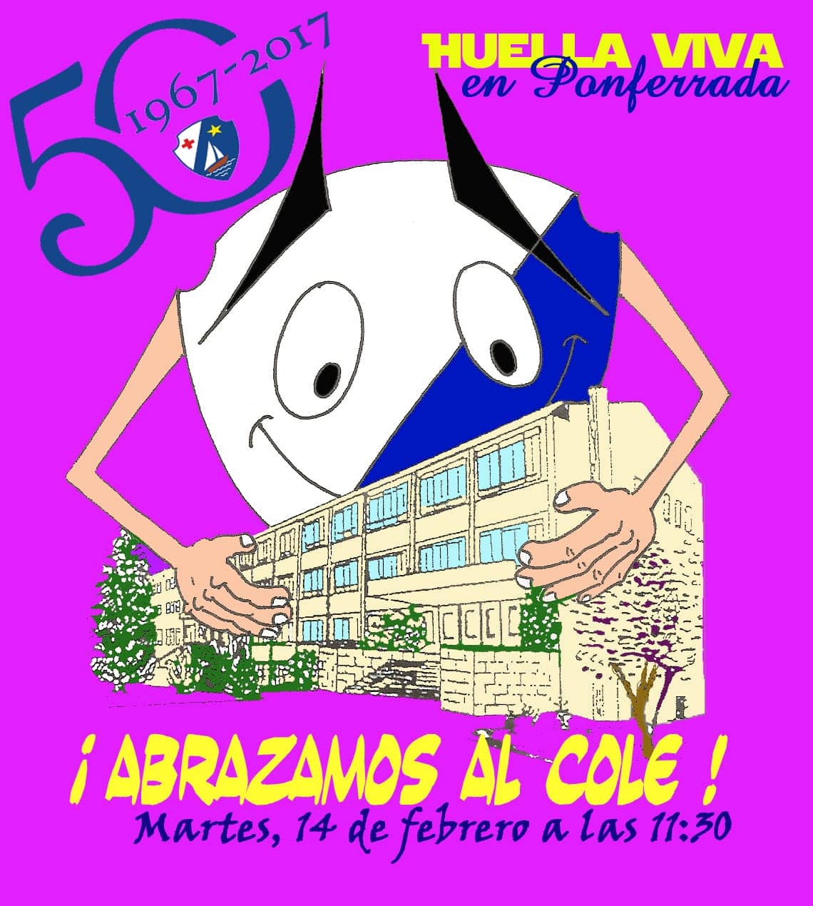 Los actos conmemorativos se abrirán el martes día 14 de febrero a las 11:30 de la mañana con un ABRAZO AL COLEGIO. Os invitamos a todos a participar.