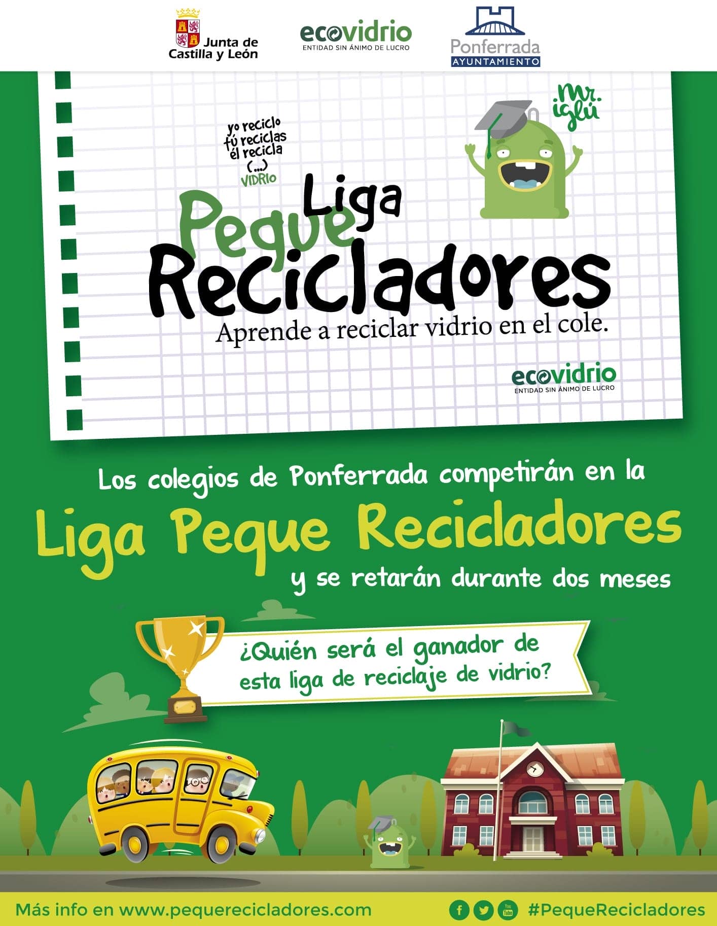 Ecovidrio y la Junta de Castilla y León, junto al Ayuntamiento de Ponferrada nos han propuesto una competición de reciclado de vidrio entre los coles de nuestro municipio y... ¡NOS HEMOS APUNTADO!.Cada colegio contará con un contenedor de vidrio (COLOR VERDE), donde todos los niños, papás, mamás, profes, etc…. tendrán que depositar todos los envases de vidrio que puedan. ¡Cuántos más, mejor!El cole que más kilos recicle ganará un fantástico premio: