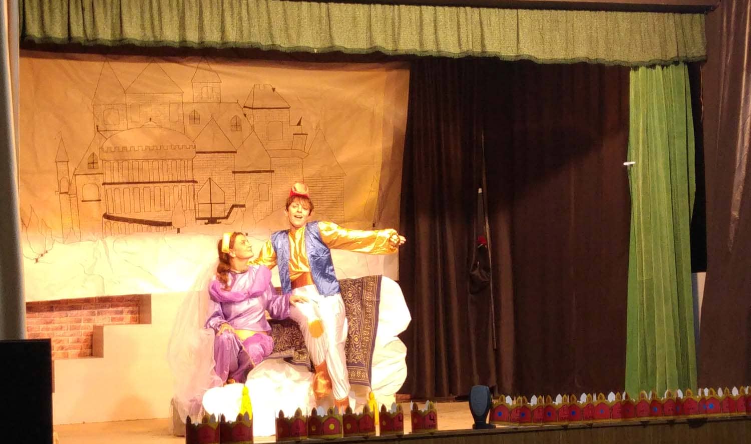 El grupo de mamás del teatro infantil nos trasladó con su representación a Agrabah y a la cueva de las Maravillas a manos de Aladdín, Jasmín y el Genio de la lámpara. También hubo momento para volar con la alfombra mágica. Tras la representación, llegó el momento del baile, recorrimos las horas a manos de unos esqueletos muy simpáticos.