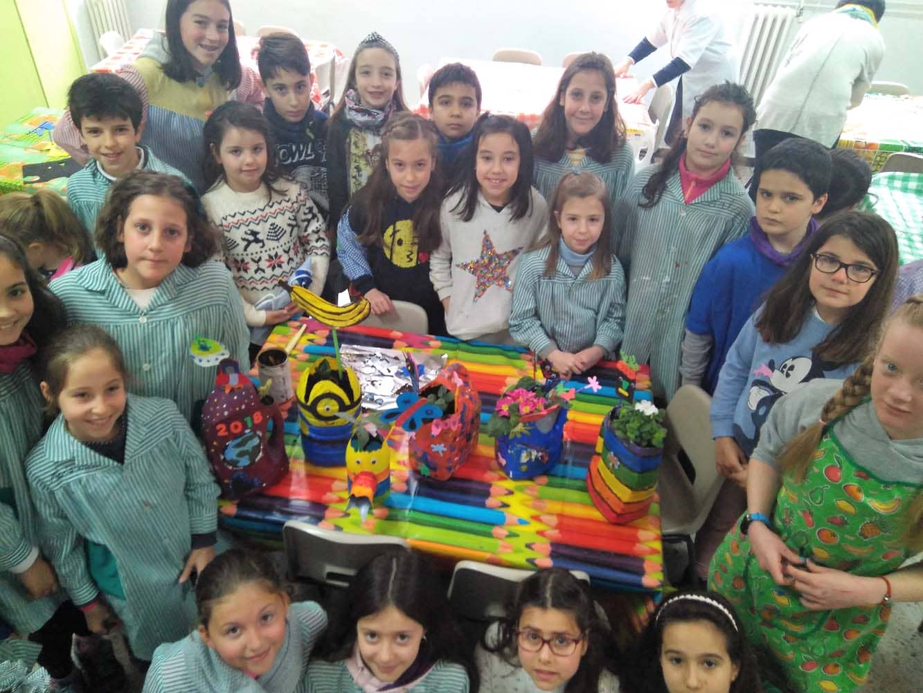 Con recipientes de plástico, mucho y color y nuestra imaginación creamos unos maravillosos tiestos, en los que luego plantamos pequeñas plantas. Estamos a la espera de que la primavera haga su magia y tengamos flores preciosas.