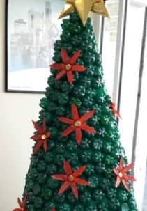 Para realizar este árbol cada alumno que quiera colaborar debe traer al colegio una botella de plástico de 1 ó 2 litros (de las que no tienen el fondo plano sino “con cúspides” tipo Coca Cola, Fanta...) Dentro de la botella debe meter un papel con un deseo para la Navidad o el Año Nuevo.