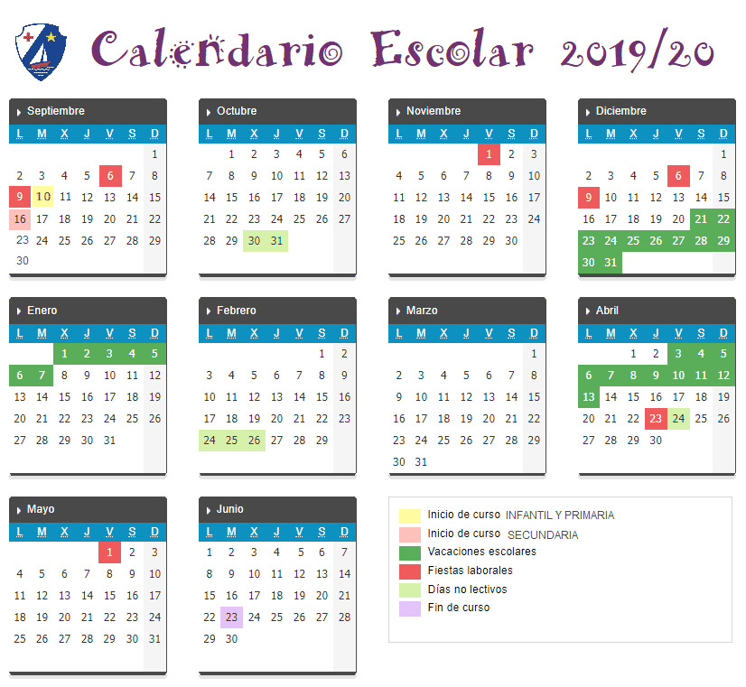 Inicio Noticias Noticias de cursos pasados Noticias curso 2019-20 Calendario escolar curso 2019/20