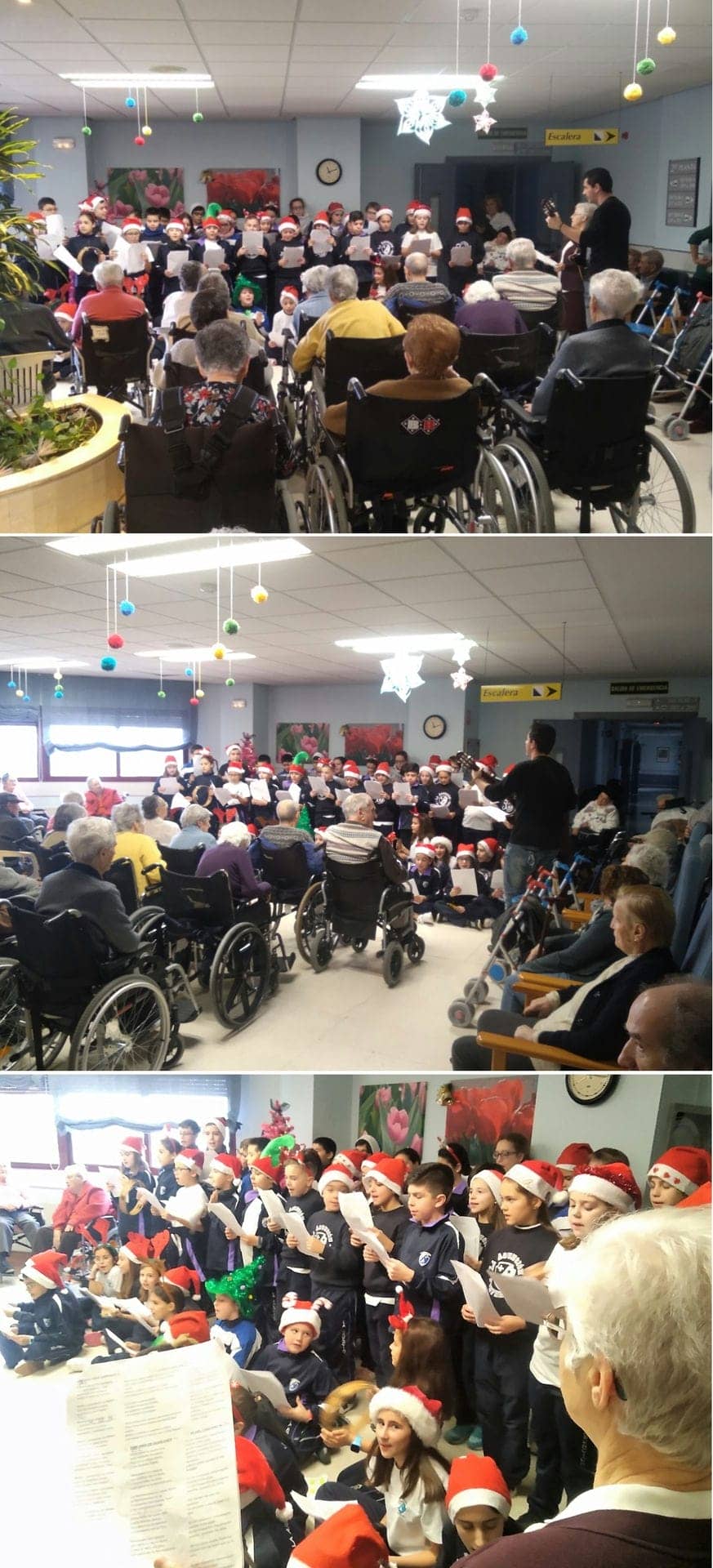 Como es costumbre en el Colegio La Asunción, los alumnos de 5° de Primaria han han vuelto dar una alegría a las personas mayores alojadas en la Residencia Mixta de Mayores Flores del Sil de Ponferrada. Hemos pasado un rato alegre y entrañable cantando villancicos populares y obsequiando a los residentes con tarjetas navideñas realizadas por por los propios alumnos.   Después de visitar a nuestros mayores, hemos realizado otra parada para cantar y tocar junto al Árbol de Navidad del barrio, situado en la Avda. La Martina.