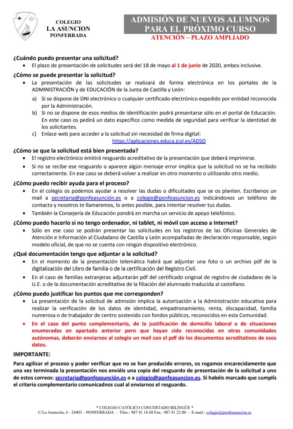 De acuerdo con el artículo 13 del Reglamento (UE) nº 2016/679 ("GDPR"), declaro que he leído la Política de privacidad del "COLEGIO DE LA ASUNCIÓN" y doy mi consentimiento para el uso de los datos que proporciono.