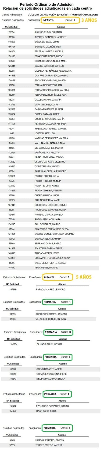 Finalmente, os dejamos con la lista de solicitudes admitidas para nuestro centro: