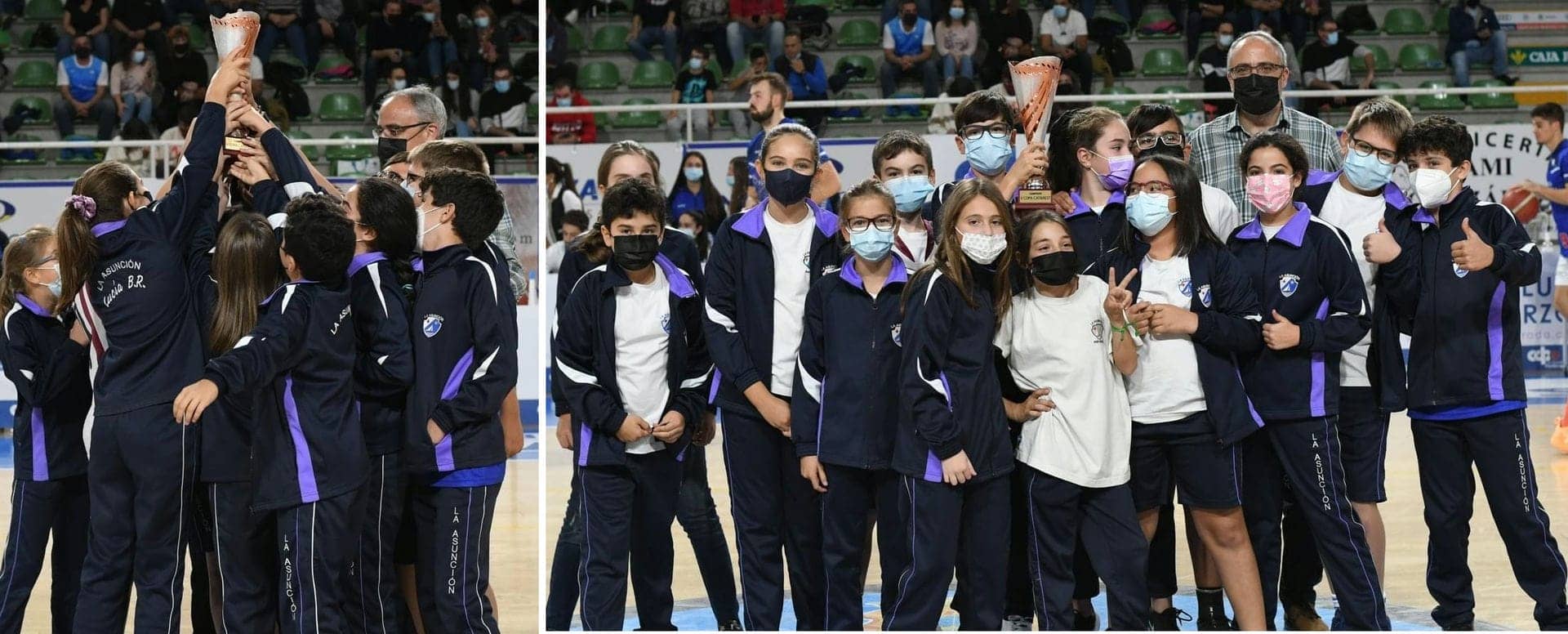 Por la tarde el alcalde de Ponferrada, Olegario Ramón, entregó el trofeo de campeones al equipo en el descanso del partido de LEB Plata que jugó el Club Baloncesto Ciudad de Ponferrada contra Clavijo y que se saldó con victoria para los nuestros y la subida en la clasificación al 2º puesto en la conferencia "oeste".