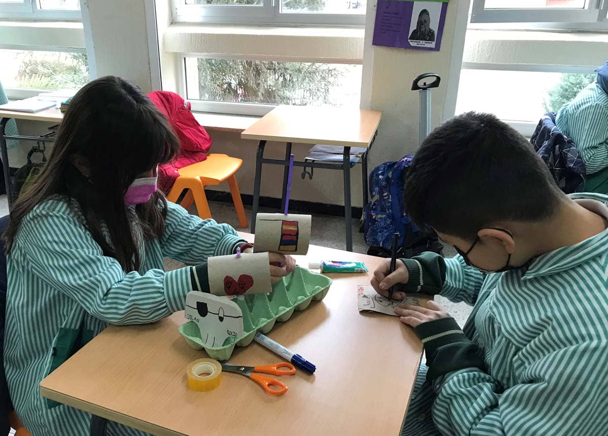 En el segundo ciclo realizaron mapas con los continentes y utilizando material reciclado realizaron diferentes embarcaciones como las que consiguieron dar la primera vuelta al mundo en el año 1522 e incluso un globo aerostático.