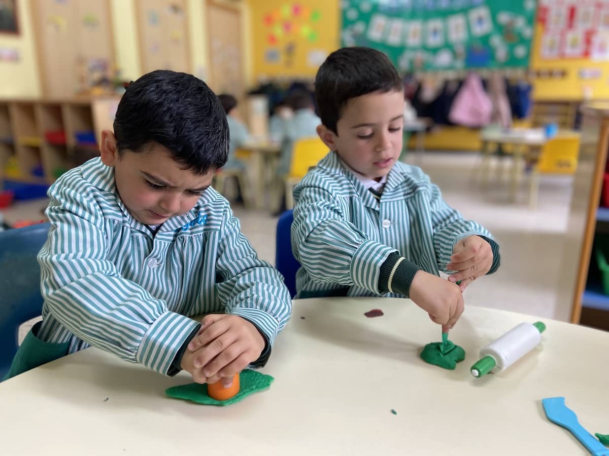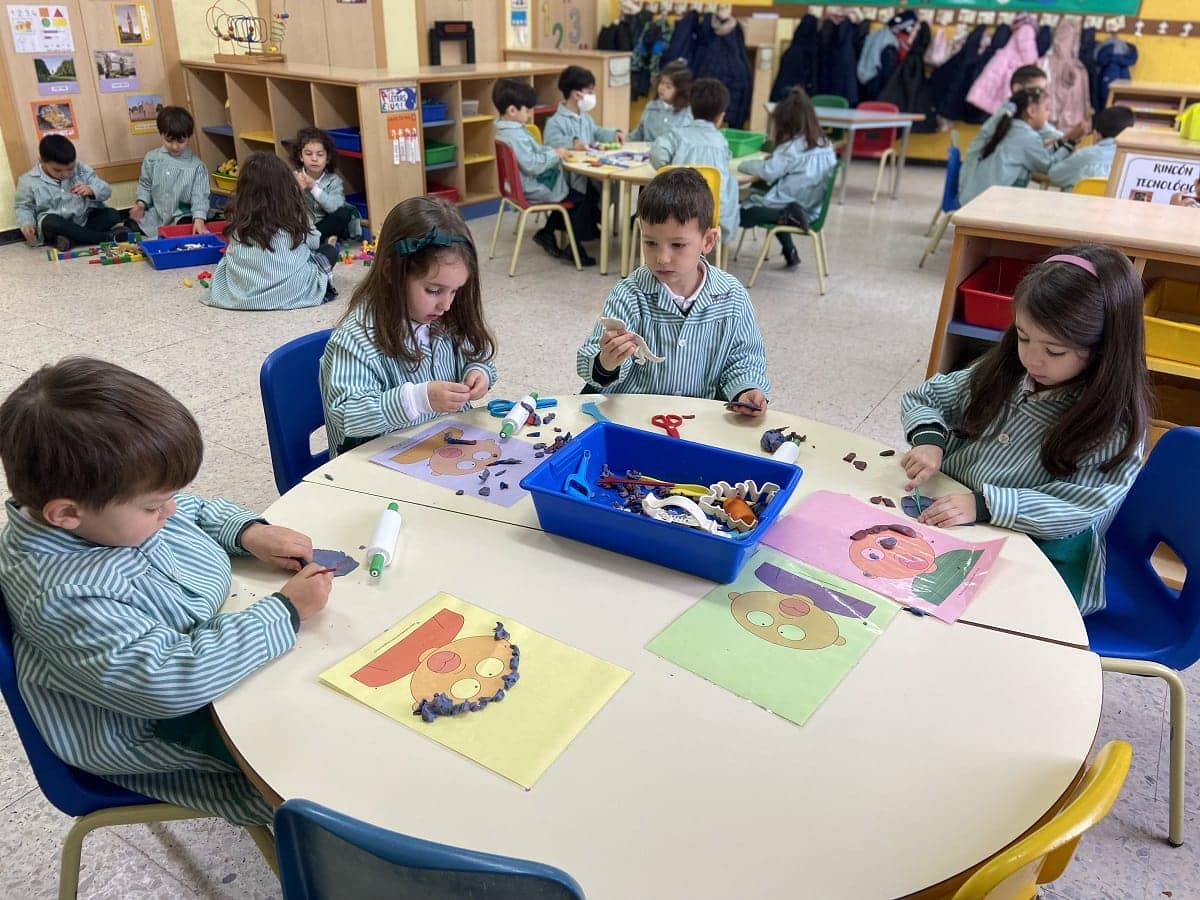En el rincón de plástica encontramos infinidad de materiales (ceras, lápices, rotuladores, plastilina, pinceles, pegamento, papeles de diferentes texturas…). Todo este material se utiliza para realizar actividades guiadas (hacer un dibujo de la estación correspondiente, imitar una obra de arte…) y actividades libres en las que los niños dejan volar su imaginación y sobre todo disfrutan creando sus propias obras de arte.