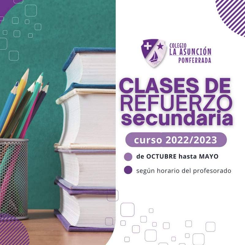 A partir del lunes 3 de octubre de 2022, los alumnos y alumnas de E.S.O. que lo deseen podrán acudir a las clases de refuerzo de las materias instrumentales (lengua, matemáticas e inglés).