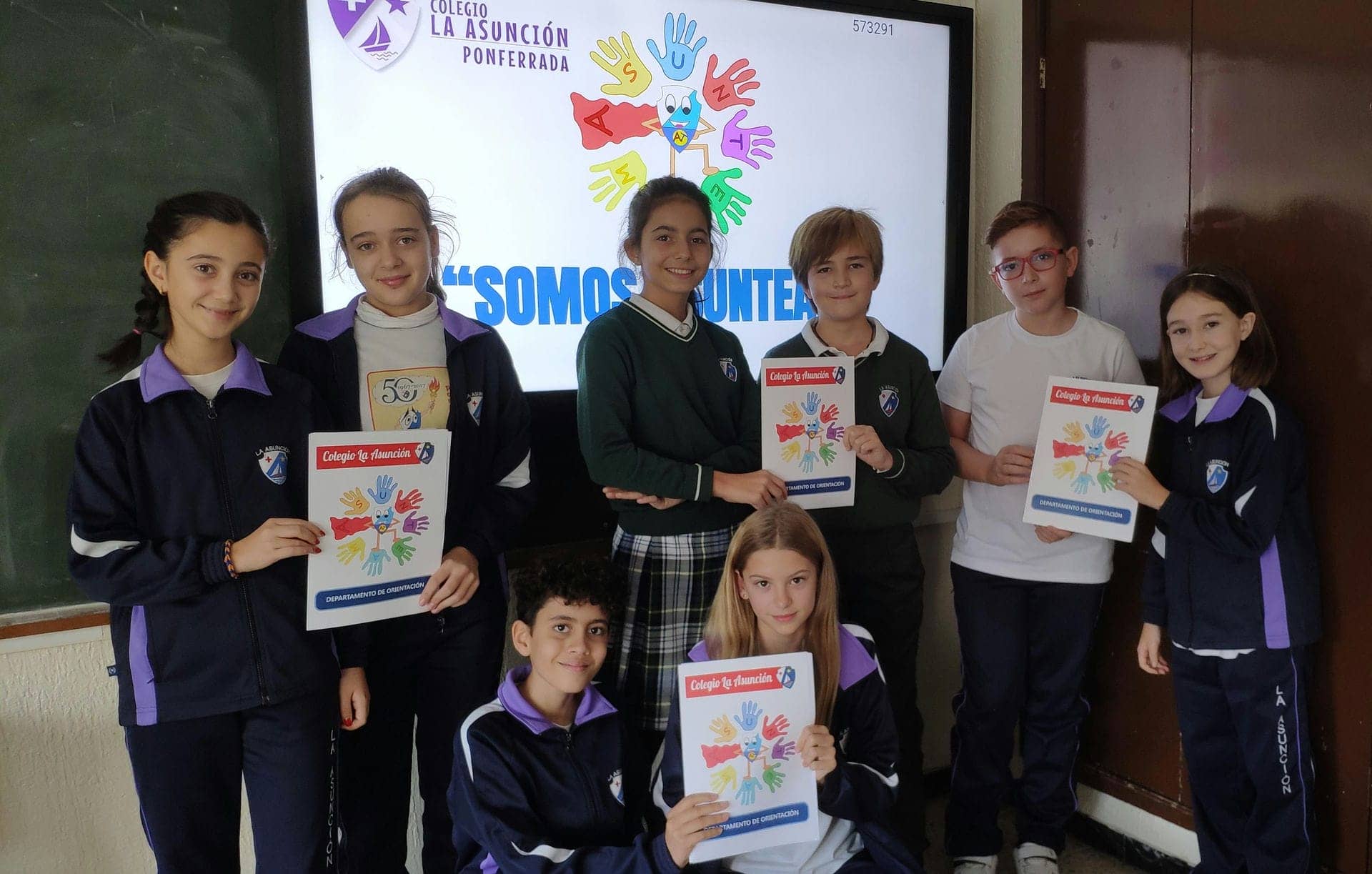 Este jueves 3 de noviembre, coincidiendo con el Día Internacional contra la Violencia y el Acoso Escolar, se han reunido los ocho alumnos/as de 5º y 6º de Primaria que, junto con sus compañeros/as de Secundaria, forman parte del Equipo ASUNTEAM (Técnicos Especialistas en Animación y Mediación) del colegio.