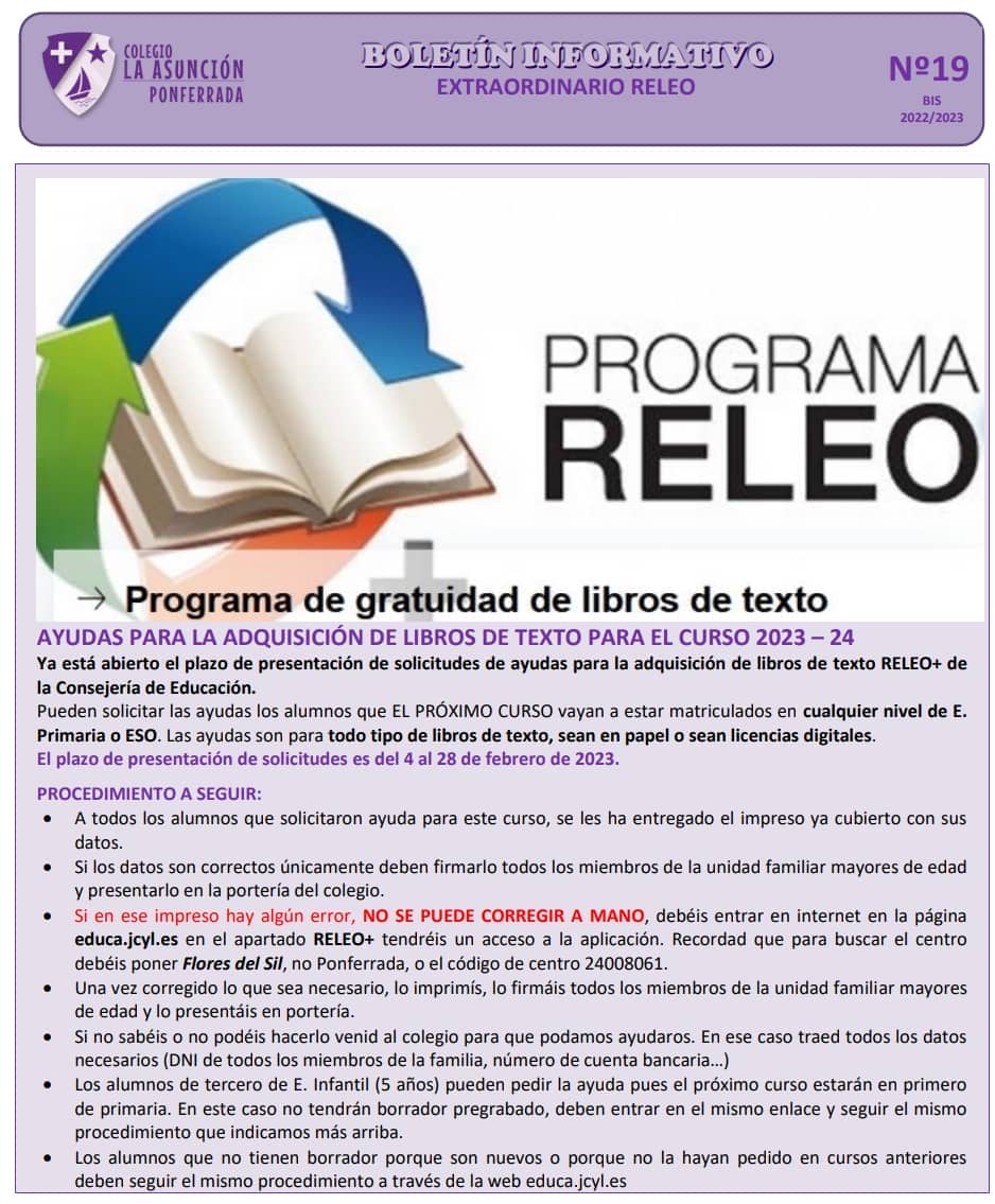 Inicio Noticias Noticias de cursos pasados Noticias curso 2022-23 Boletín extraordinario: programa gratuidad libros de texto RELEO