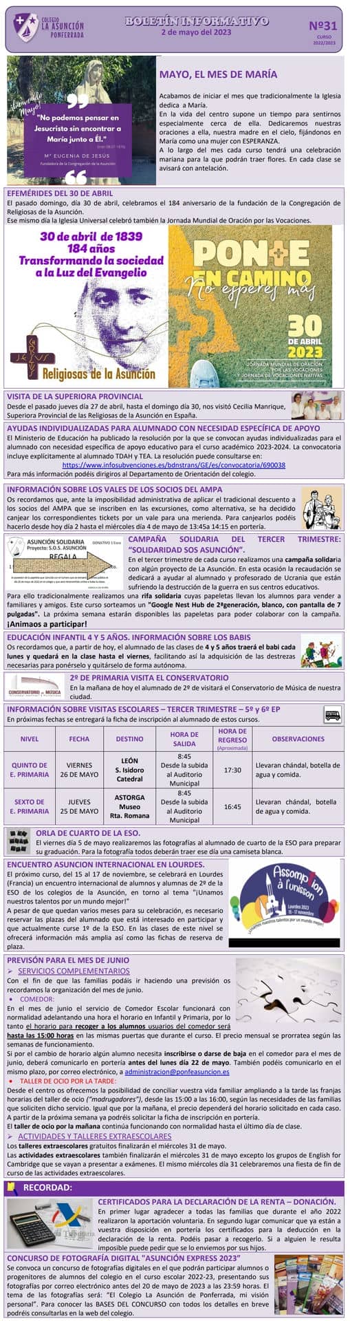 Inicio Noticias Noticias de cursos pasados Noticias curso 2022-23 Boletín informativo del 2 de mayo del 2023