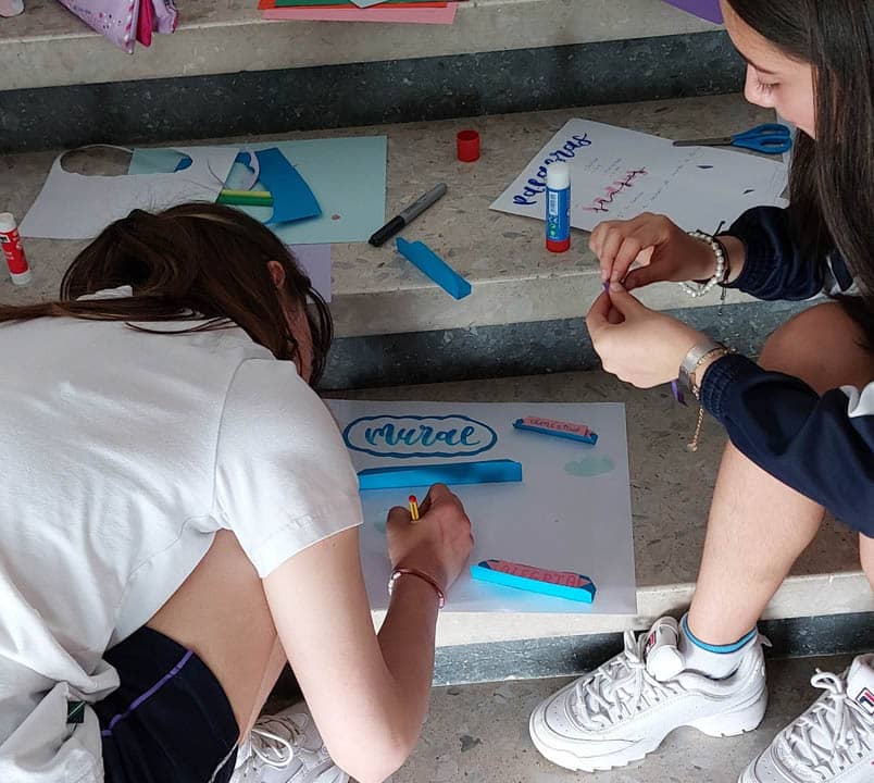 Al final de la jornada presentamos los trabajos realizados y nuestros murales han quedado decorando clases y pasillos para recordarnos lo bien que lo pasamos cuando todos colaboramos con alegría en un mismo proyecto.
