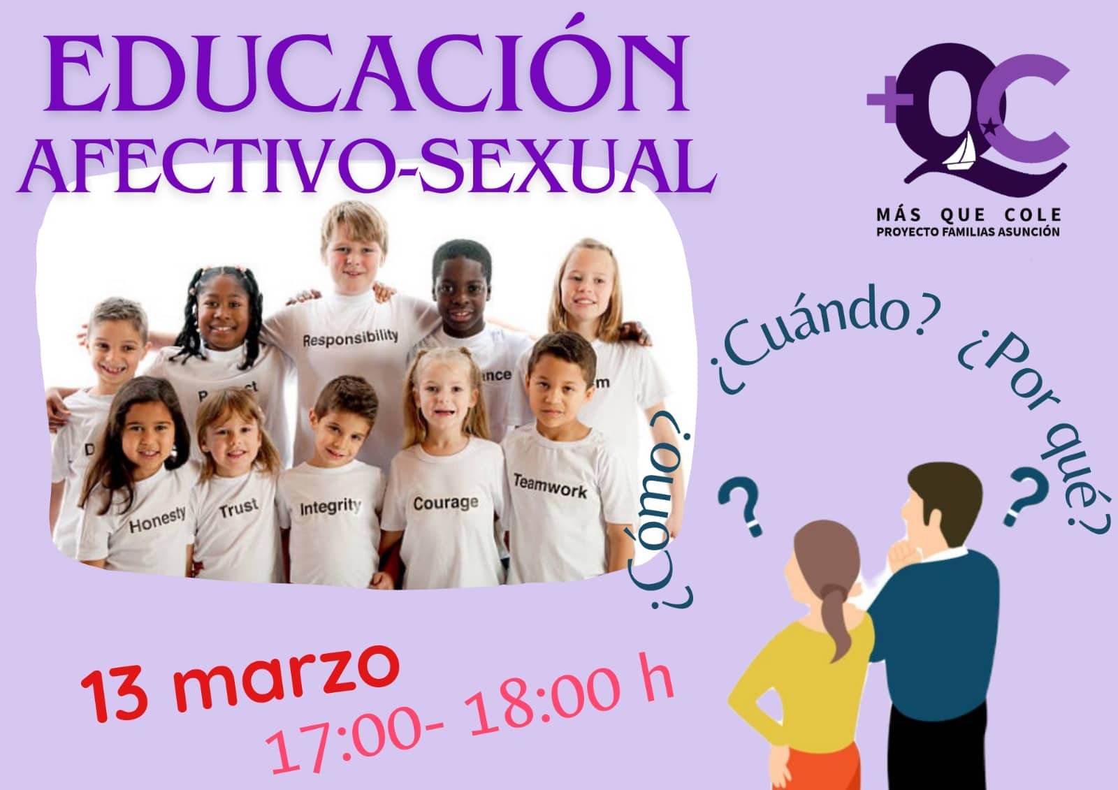 El miércoles, 13 de marzo, nuestra reunión de +QCole abordó un tema muy interesante que nos implica como padres y madres en la educación integral de nuestros hijos, la educación afectivo-sexual.